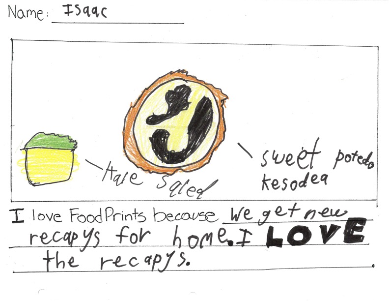 “I love FoodPrints because we get new recipes for home, and I love the recipes!”