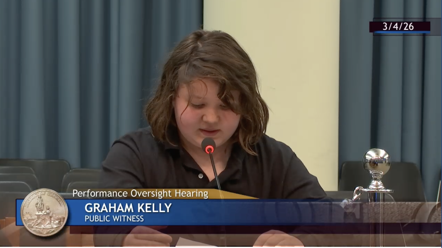 My name is Graham Kelly and I am in the 5th grade at John Francis Education Campus in Ward 2. I also live in Ward 2.