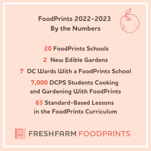 We partner with 21 DC public elementary schools to serve 8,000 students with joyful, hands-on, standards-based food and garden education experiences that aim to improve academic and health outcomes.
